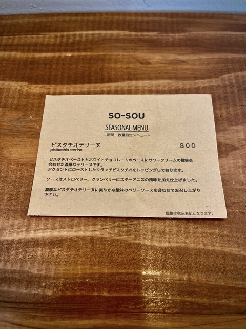 濃厚なピスタチオテリーヌに爽やかな酸味のベリーソースを合わせてお召し上がり下さい。