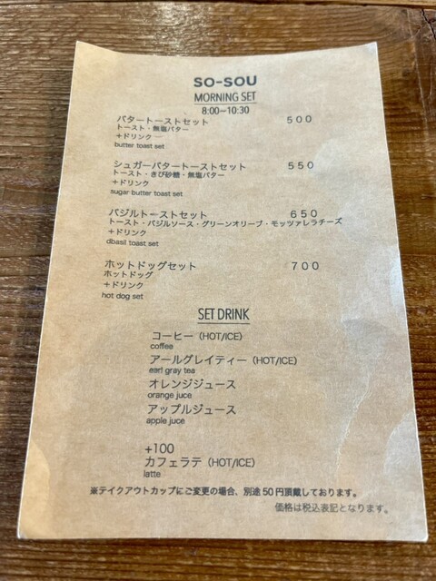 本日はバジルトーストな気分だったのでモーニングメニューの中からバジルを。