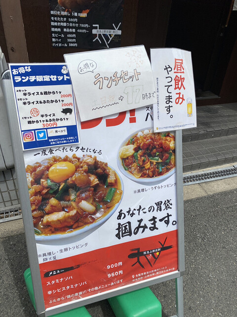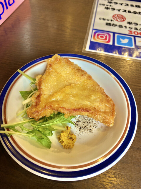 スタミナそばにうずらをトッピングし、平日の️セットメニューをオーダー。️セットは半ライスと豚唐揚げのセット。トッピングの生姜、にんにく油は全てオーダー。