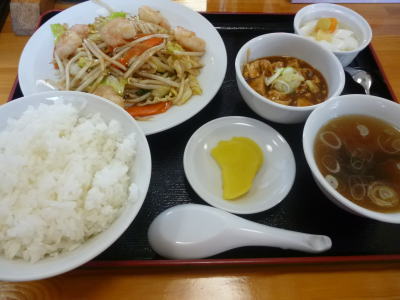 麻婆豆腐、杏仁豆腐、漬物、中華スープ