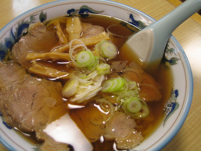 平日のお昼前に行ったら空いていました。チャーシューメンを頼むと、私好みの中ちぢれ麺で厚めのチャーシューが並んでいました。チャーシューを一度スープにつけて食べると、肉の油がスープになじんでおいしい!