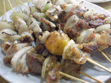 モツ串には、ハツ、砂肝、ウチ卵、皮、レバーが