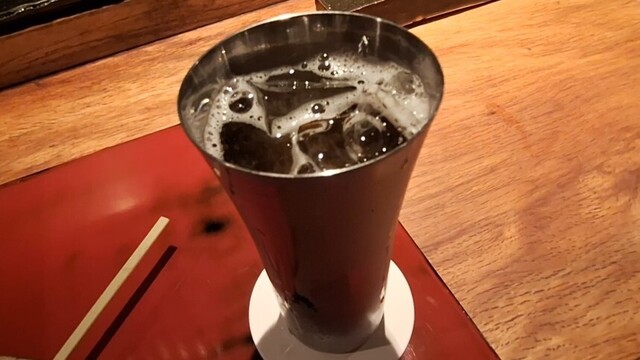 ライブ感溢れる焼き台を眺めながら麦酒を頂こう。