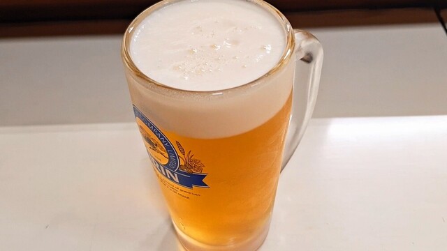 レバーの余韻を残しつつ、麦酒をグビリ♪