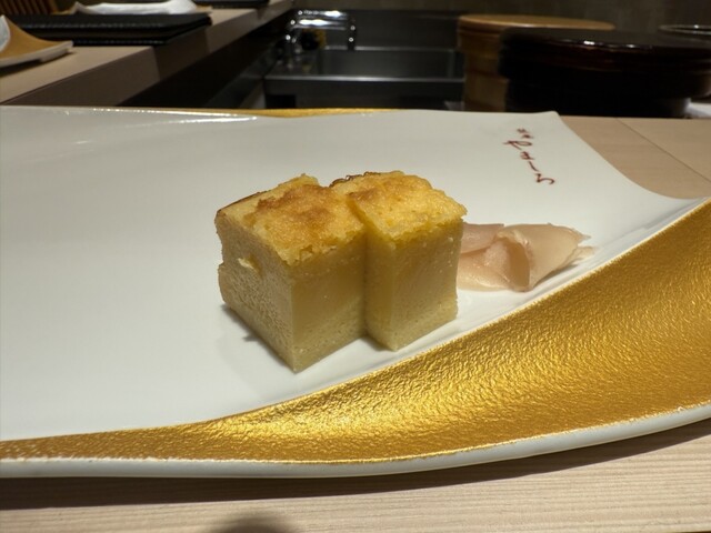 お通し、天然ヒラメ(もみじおろしと柚子胡椒)、本マグロ赤身、えんがわ、金目鯛の炙り、しまあじ、海鮮丼(富山の白海老、イクラ、ウニ)、白子、キャビア、金時鯛、ホタテ、さわらのゆうあん焼き、玉子、べっから漬け、茶碗蒸し、トロ(青森県産)、穴子、鉄火巻き、赤出汁、生姜と黒糖のアイスの順番にいただきました。