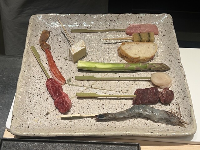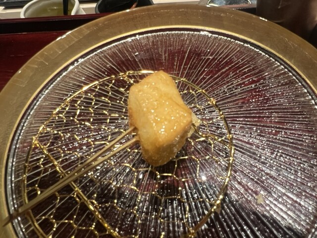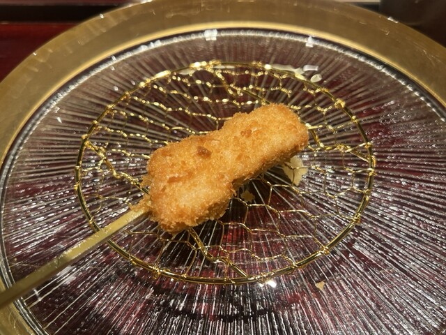 串揚げ最後の10つめはカマンベール、はちみつがかけられていてクアトロ・フォルマッジを彷彿とさせる美味しさでした。