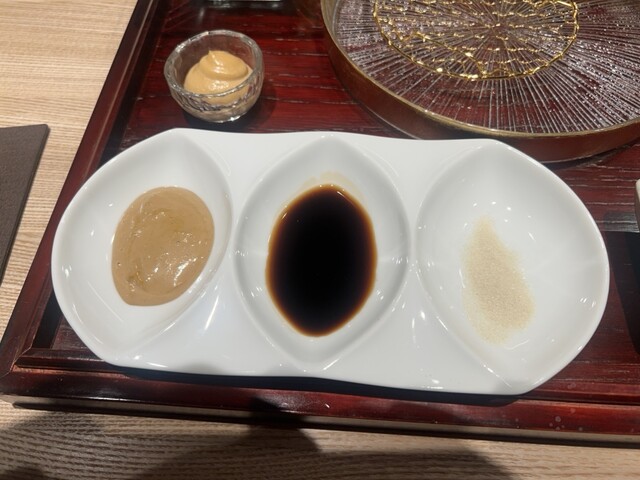 3つめは帆立のタルタルキャビア添え、ほんのりレア部分を残す揚げ方が絶妙な美味しさを醸し出していて、隠し味にほんのりかけてあるトリュフオイル がまた絶妙な香りを生んでいて絶品です。