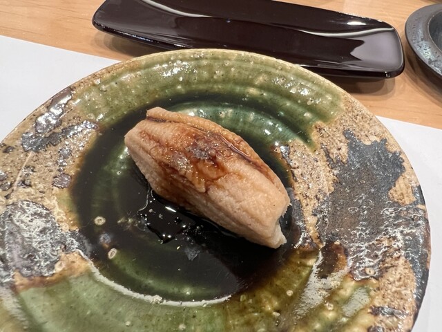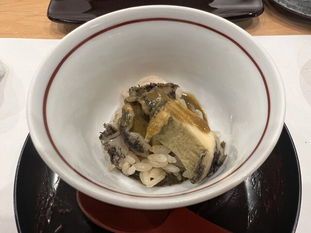次は鮑の酒蒸し、めっちゃ柔らかい鮑と赤酢シャリが良い感じでマッチしていて美味しいです。