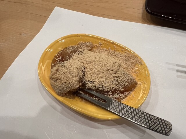 黒蜜のわらび餅は温かく上品な甘味で美味しかったです。
