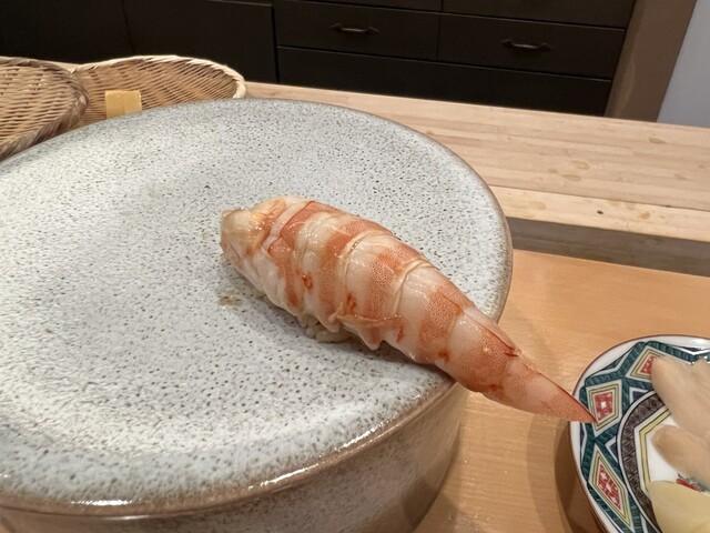 お寿司ですが最初はカスゴ、柚子塩が絶妙に効いて美味しいです。