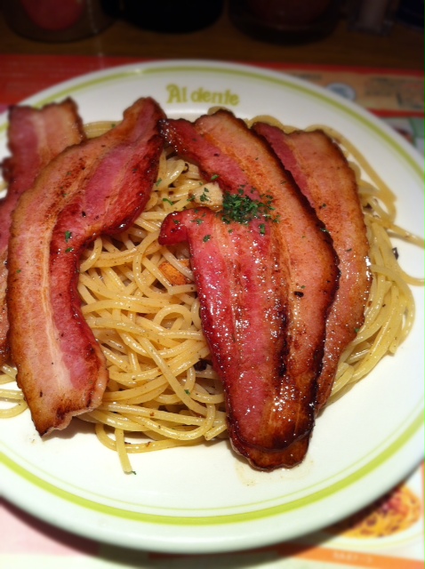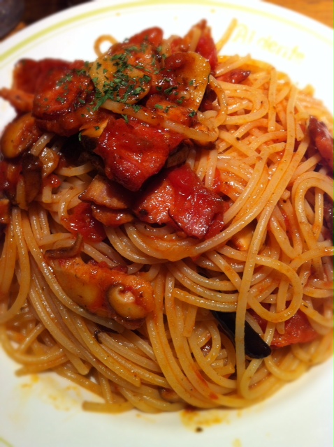 今日注文したのは「ボロネーゼ」の大盛+ベーコントッピング。