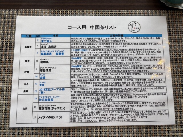 今日いただいたのは「飲茶コース」、税込3980円です。