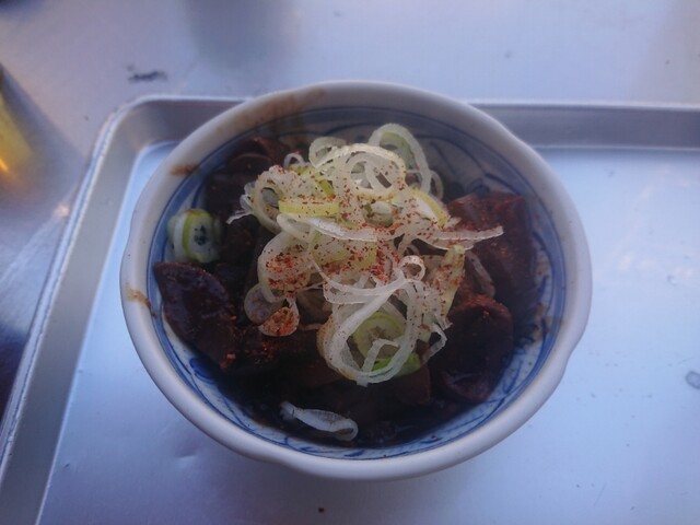 注文は「ホルモン煮¥650」「おしんこ¥150」「瓶ビール(中)¥600」