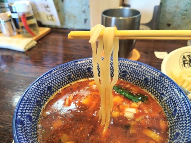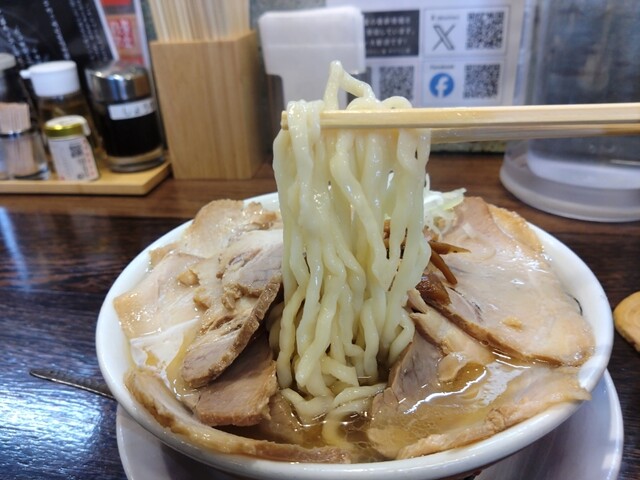 自家製の太麺はモチモチした食感でこのスープによく合います。