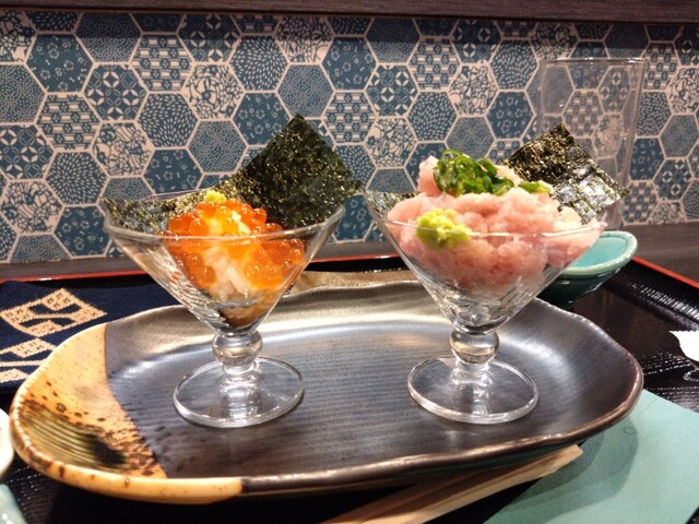 グラス入り軍艦 サーモン 筋子 ネギトロ