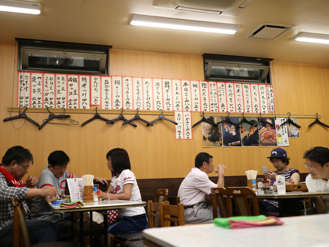 広島駅の南東にあるシブ~い食堂兼居酒屋さんです。暖簾をかき分け中を覗くと奥の方に相席覚悟の空きがあったので入ってみました。