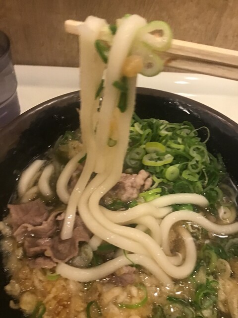 麺は柔らかでした。大阪なのでやわ麺ですが、麺の食感自体はあんまり良くはありませんでした。一度茹で置きしてもう一度茹でているような、そんな感じでした。早く出てくるので、そんな感じかなとも。。。駅ホームにある立ち食いうどんのレベルです。