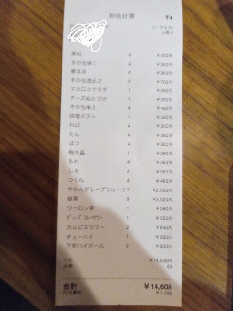 19時頃には殆ど満席になっていました。結局3時間も居て、お会計は14608円。一人あたり3650円位でした。3時間も食べ飲みまくってこのお値段!安くて美味い!地元にあれば毎週行ってしまうでしょう。