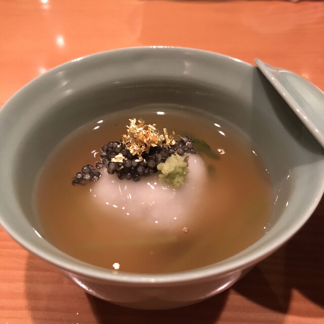 鶏団子を餅で包んだお料理。鶏の出汁がまた美味しく、キャビアの塩味が丁度いい。