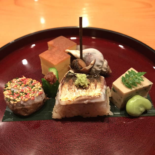 蕎麦寿司のような佇まい。中には蝦蛄。
