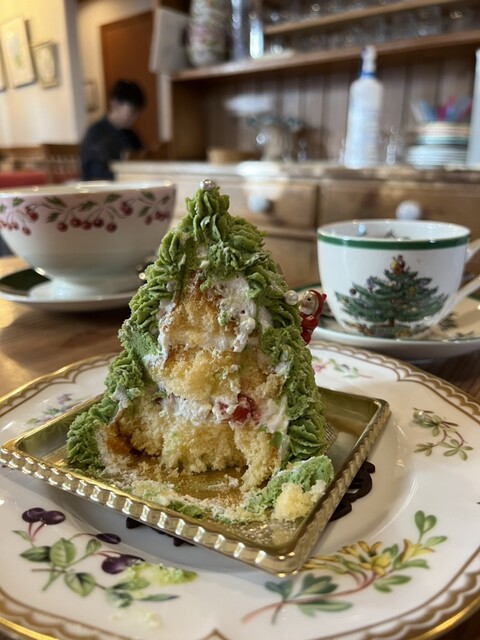 栗の季節なのでモンブランに惹かれたけど、やっぱりクリスマスの時期しか食べられないもみの木ケーキを注文