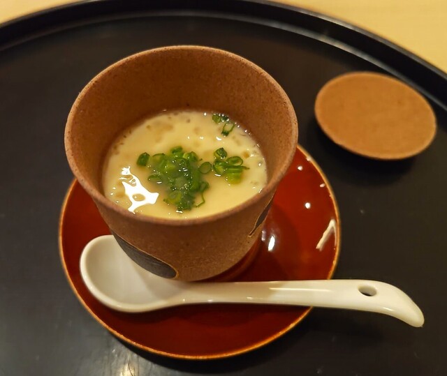 このわた入りの茶わん蒸し。軽く混ぜて頂く。このわたは勿論、茶わん蒸しの味付けがそれに