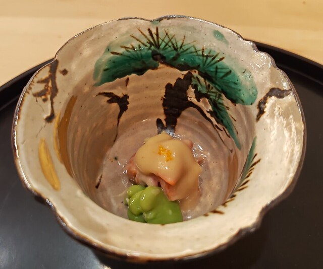 最初の一品。冷製で供されるこちらのお料理、かつての乃り泉の大将の頃からのメニューとの