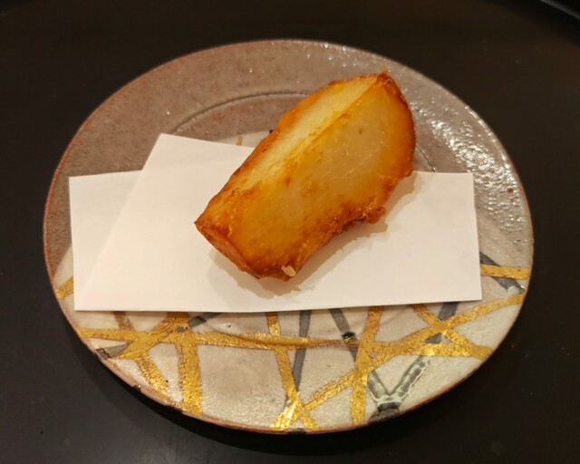 箸休めに出された海老芋の揚げ物。要は出汁でしっかりと調味された海老芋のフライだが、