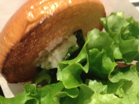 マリネされた小松菜トマトワサビ入りタルタルソース ビーフィパテが超美味しい