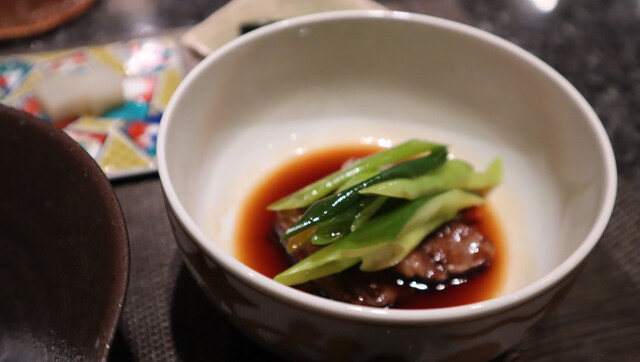 付け合わせは塩、わさび、ニンニクタレ、梅ダレでした。
