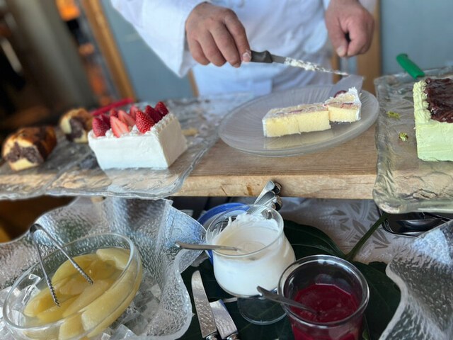 ケーキはワゴンから3種類選べどれもおいしかったー