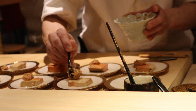 白木のカウンター10席のみ。