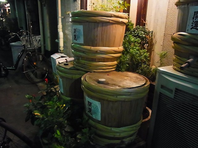 お店の前に重ねてある開運の樽が良い雰囲気を醸し出しています