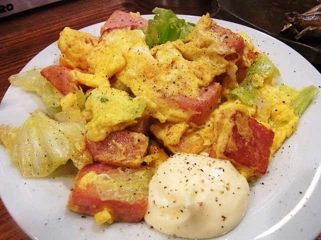 スパムと玉子とキャベツ炒めだったかな?美味しかったですね