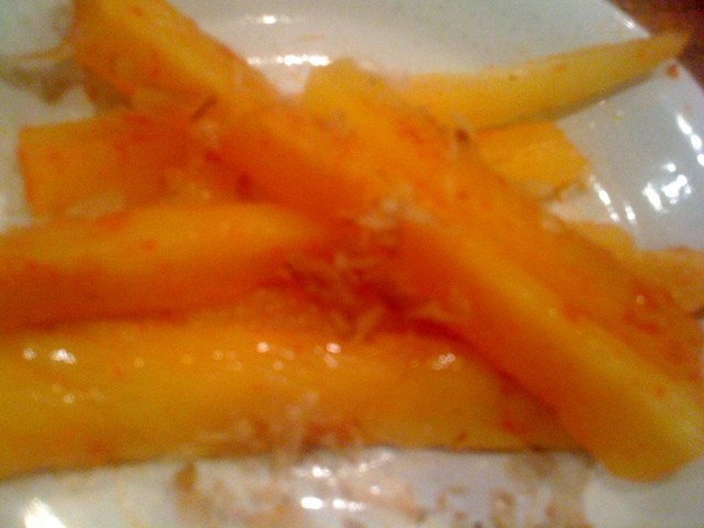 さつま芋のカリット、きびなご、温泉水で蒸してから焼く