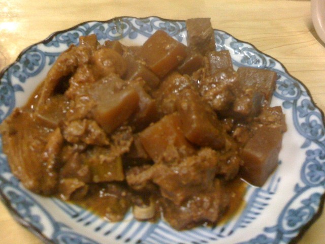 もちもちチーズ(300)と煮込み(500)とレバフライ(450))