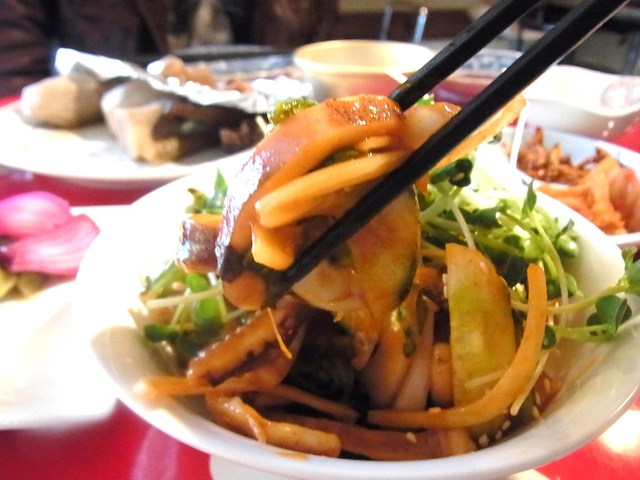 イカと玉葱とキュウリをコチュジャンであえたもの