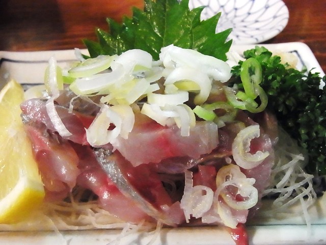 鯵のタタキは、脂が適度に乗っていて新鮮で美味しかったです。