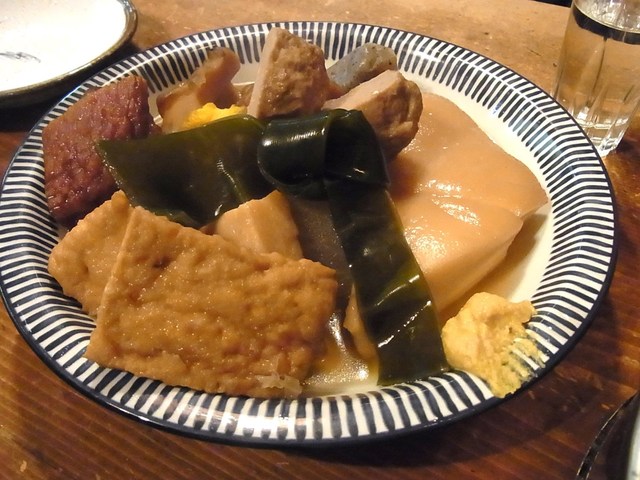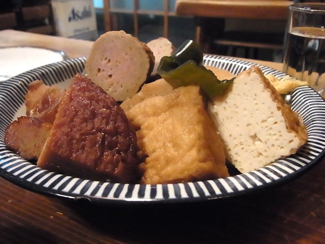 おでんは速攻で出て来ましてあつあげ、こんぶ、つみれ、さつまあげ、はんぺん、ちくわ