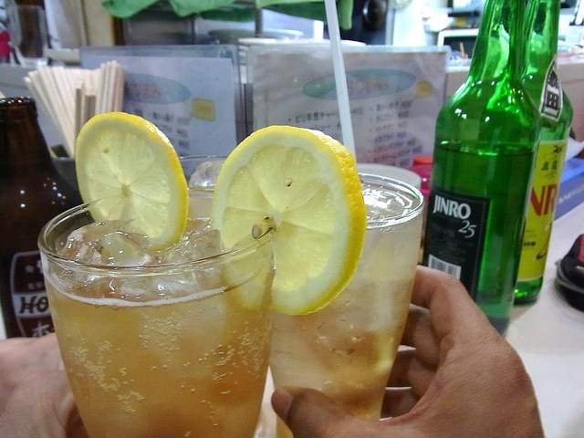 ミッキーを作りたそうなぽぱいさんにレモンを渡すとさっそくミッキー(笑)かんぱい!