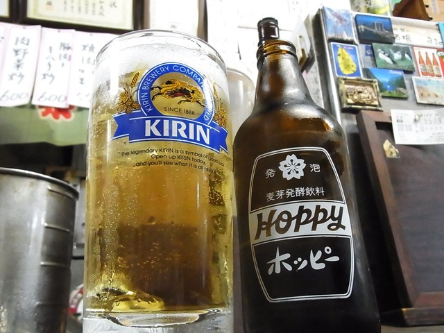 とりあえず生ビール(450)とホッピー(370)でかんぱいして喉を潤す