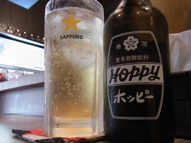 なんかスパイスの効いた美味しいスナック出してもらったのいただきながらぐび~っとホッピーで流し込む