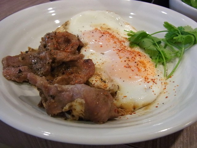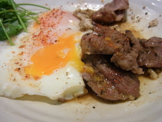 そしてラムエッグですが良い感じの半熟の目玉が2個に濃い目の味付けのラムに黄身を絡めていただくと