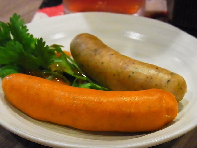 タイソーセージ(380)を一緒に頼んでいただきましたが程よい風味のレッドカレーとガパオ味で