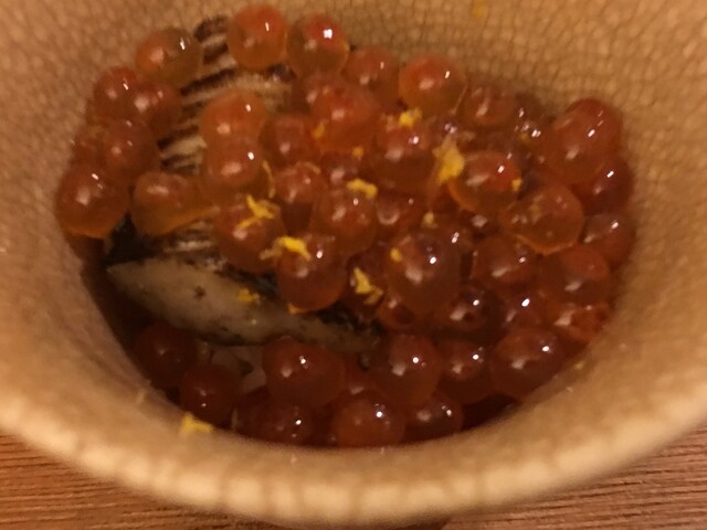 香箱蟹、蟹の頭にぎっしりと蟹の身と卵と蟹味噌を和えたもの。