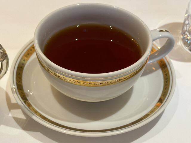 コーンスープ、和な感じもするお皿での提供。丁寧さが感じられる。