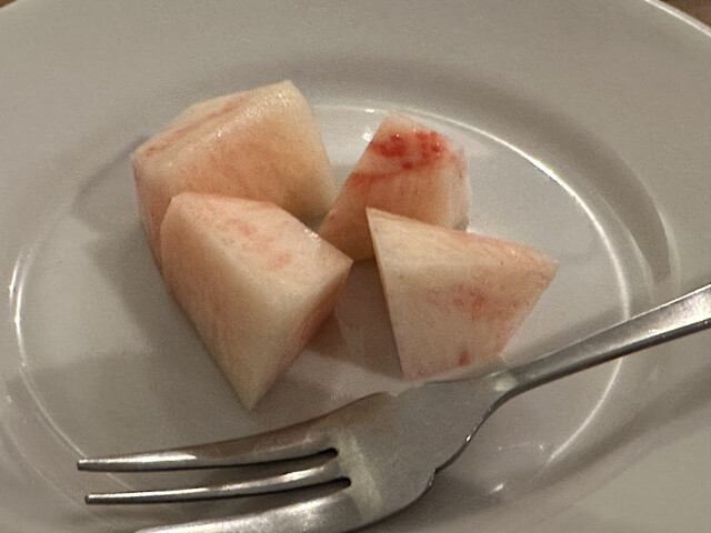すっかりお気に入りの桃のゼリィ、爽やかで喉越しが良く、暑い日に完璧