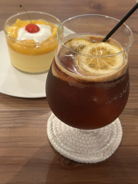 珈琲ゼリーと冷たい紅茶の組み合わせ。
