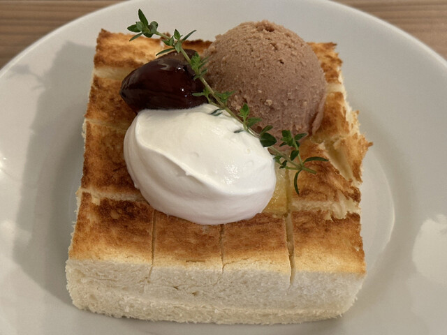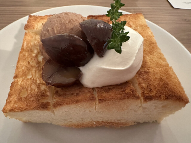 【季節限定激美味マロントースト】とスィーツと珈琲とマリアージュフレールのお紅茶があるお店