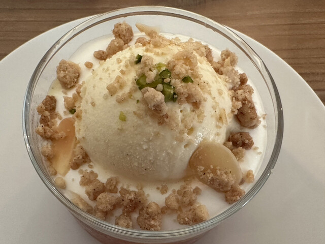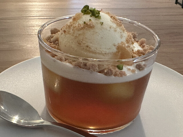 桃果肉入り紅茶ゼリーとアイスクリームでとても涼やか( *´艸`)